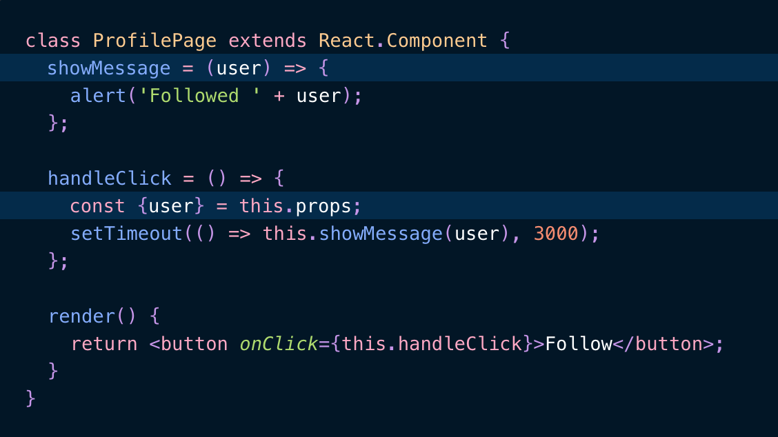 왜냐하면 click당시의 user값을 3초후에 전달해주기 때문이다.