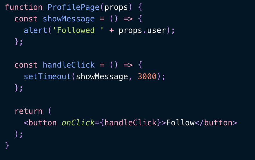 함수형 컴포넌트는 클릭한 시점의 값을 alert에 노출시킬 것이다.
